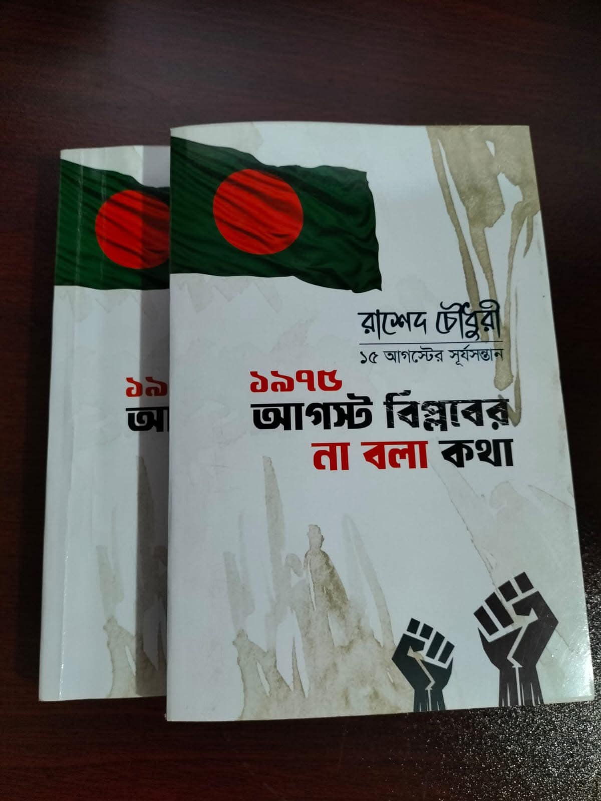 "১৯৭৫ সালের আগস্ট মাসের রাজনৈতিক ঘটনাগুলোকে কেন্দ্র করে বীর সেনানী রাশেদ চৌধুরী একটি গুরুত্বপূর্ণ বই লিখেছেন। ‘১৯৭৫ আগস্ট বিপ্লবের না বলা কথা’ শিরোনামের এই বইটিতে তিনি অনেক গুরুত্বপূর্ণ তথ্য তুলে ধরেছেন। সেই সময়ের প্রকৃত ঘটনা জানতে চাইলে, এই বইটি আপনার জন্য একটি ভালো উপাদান হতে পারে।"